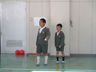 今日の集会を通して、1年生と仲良くなることができたと思います。次は遠足です。仲良く手をつないで歩いて行きましょう!