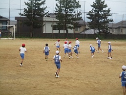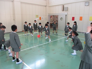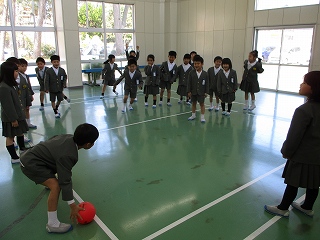1年生は、2年生が転がすボールから一生懸命逃げていました。最後まで逃げ続ける1年生もいて、白熱しました。