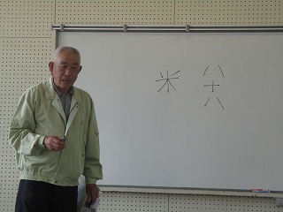 5年生は今年度も、地域に住まわれる髙道さんから田をお借りして、米づくり体験をさせていただけることになりました。毎年お世話をしてくださる髙道さんに、感謝申し上げます。先日4月20日には、髙道さんに米づくりのための1年間の仕事の流れを教えていただきました。