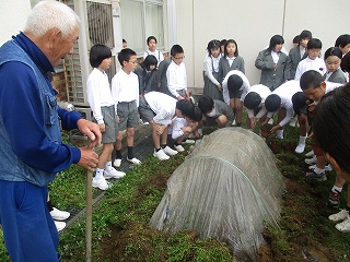 その場で作業していた校長先生に、「松の葉で痛くないですか」と気遣う優しい声かけも聞かれました