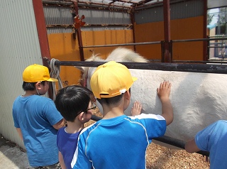 夢ミルク館では、牛、馬、ヤギ、うさぎ、などのたくさんの動物と触れ合うことができました。「ふわふわだ!」「かわいい!」と、とてもうれしそうな様子でした。餌やりもさせていただいて、貴重な体験となりました。お別れした白帆台小学校の友達とも再会できて、とても楽しい遠足でしたね!