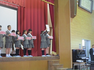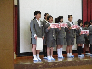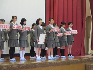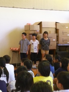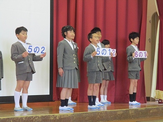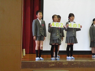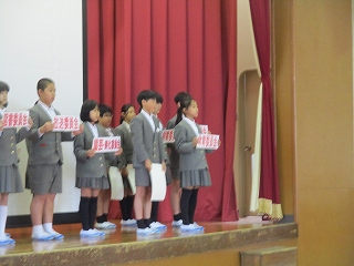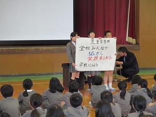 今日の児童集会では、企画委員会が児童会目標を発表しました。