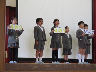 また、4年生以上の学級代表も学級目標を発表し、前期の抱負を述べました。学級代表として、さまざまな場面で頑張ってくれると思います。