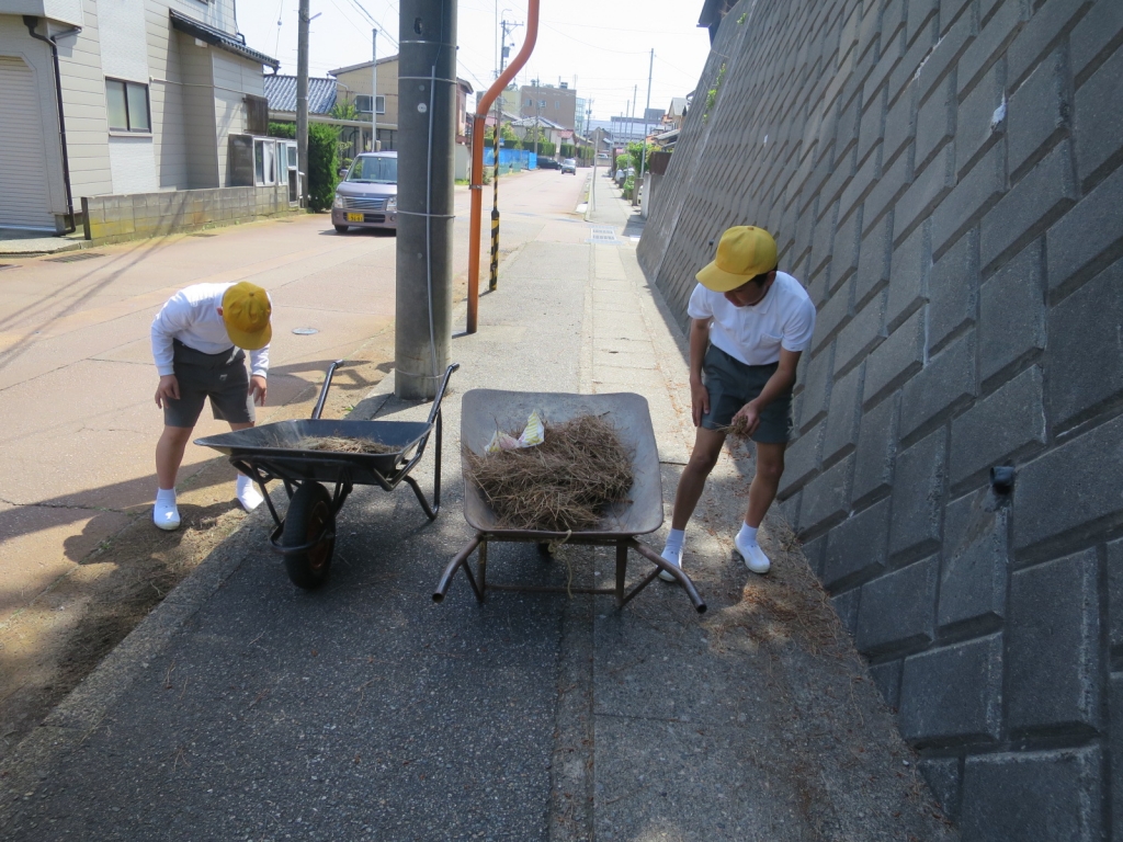 運動場に学校裏の花壇周辺、玄関前の駐車場・・・それぞれの場所で一所懸命取り組みました。