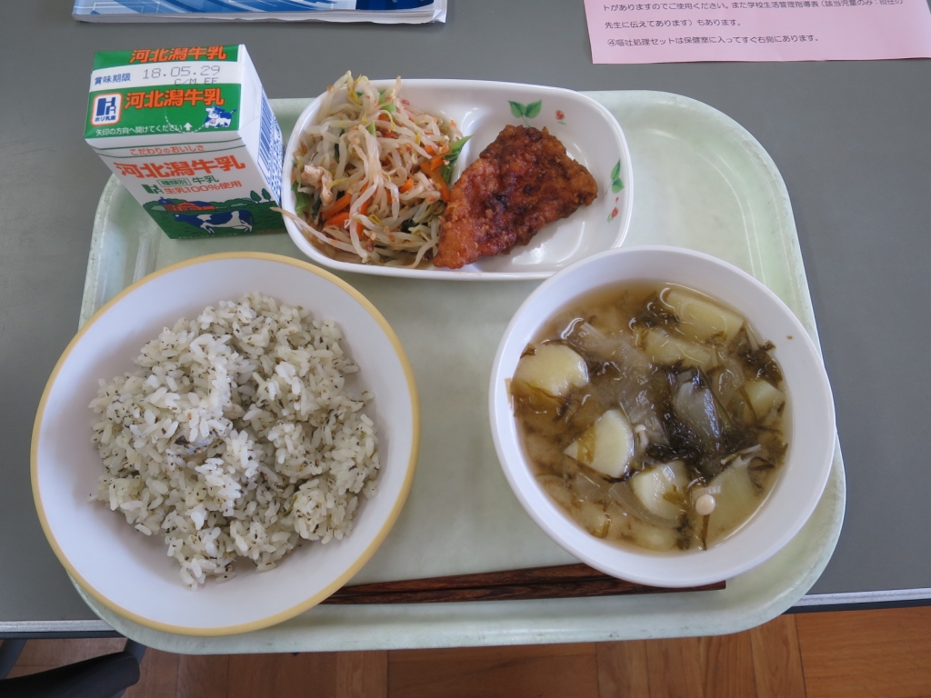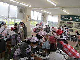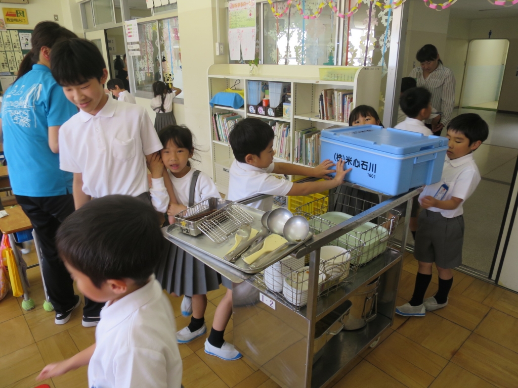 最後に1年教室に行き、給食の様子を見学しました。