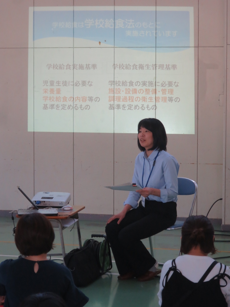 まず、内灘中学校栄養教諭 羽毛(はも)奈津子さんより、学校給食のお話がありました。1食の給食費270円の内訳や