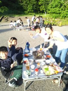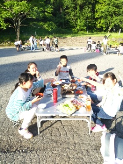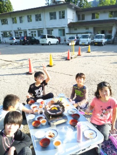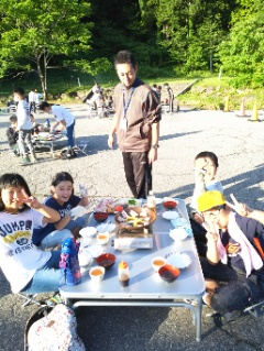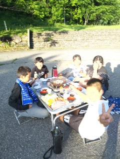 ちかねの晩ごはん。白山少年自然の家名物の、陶板焼です。陶板で焼いたお肉は最高です。みんな、たくさん食べていました。