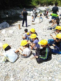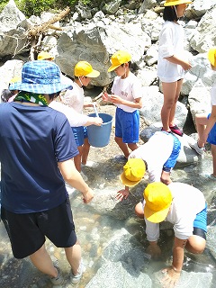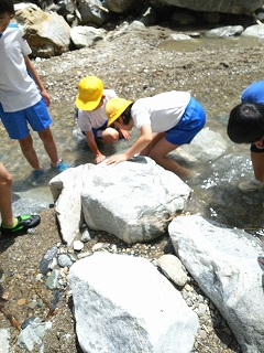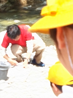 5年宿泊体験学習 イワナつかみ