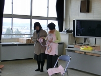 また、赤ちゃんの重さを実感できる人形を一人一人抱っこしました。7人のお母さんたちからも体験談をお聞きすることができ、子どもたちは、生まれる前から愛されて育ってきたことを実感したと思います。授業後、子どもたちからは「お母さんってすごいと思いました。」「お母さんにありがとうと言いたいです。」などの感想がありました。普段は気づけないような、家族の愛情を感じることができましたね。