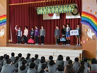 4年生はクイズを通して優しいエピソードを劇で紹介してくれました。