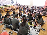 お昼には、お家から持ってきたお弁当を友達と楽しくしゃべりながら美味しそうに食べている様子が見られました。