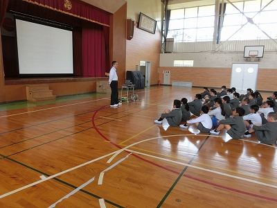 先日から学年ごとにバスマナー集会が行われました。
