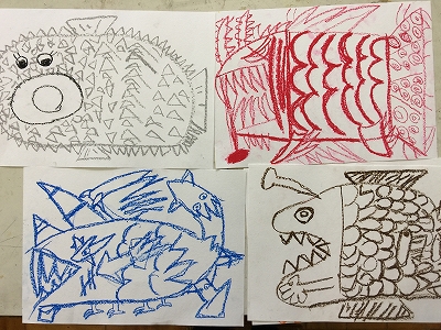 3年生らしい独創的な下書きから、カラフルな新種の魚が発見できることでしょう。