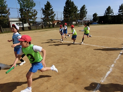 どの児童も一生懸命に走ったり、「いけー!がんばれー!」と声援を送ったりと