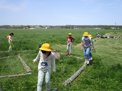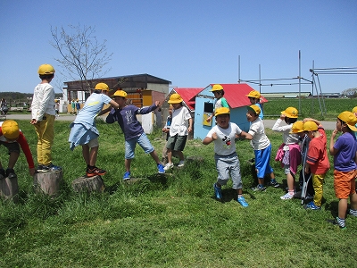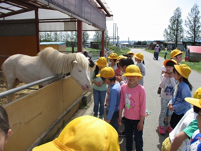 到着すると、丸太渡りや鬼ごっこをしたり、馬やウサギなどと触れ合ったりして、楽しそうに遊んでいました。