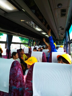 無事出発しました。2組のバスでは、活動係がじゃんけん大会を企画してくれました。