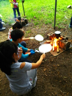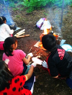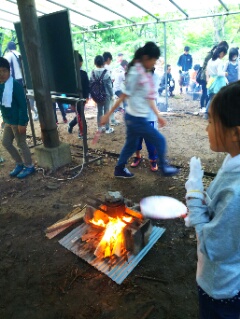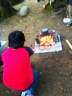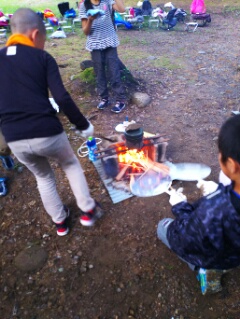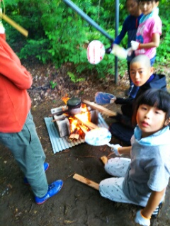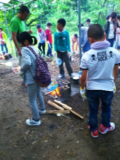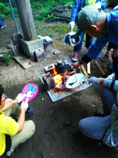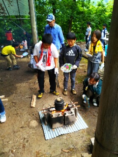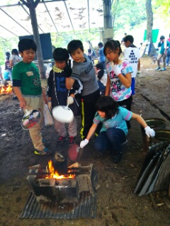 飯ごうでご飯を炊きます。みんな薪に火をつけるのに悪戦苦闘!