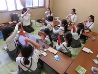 茶道クラブでは、作法や礼儀などを先輩から教わる姿が見られました。