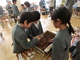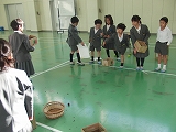 次に,前半と後半に分かれて,「あきのわくわくゲームランド」スタート!!お店番の子たちは,ゲームのやり方を上手に説明したり,看板を持って大きな声でお客さんを呼んだりしていました。お客さんの子どもたちは,ふくわらいやどんぐりおとし,玉入れ,どんぐりすくいなどどお店も楽しみながらゲームをしていました。
