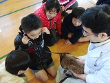 次に、うさぎの心臓の音や人の心臓の音を聞きました。うさぎの方が、心臓の動きがはやいことを教えてもらいました。
