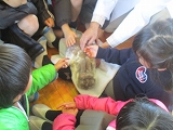そして、グループにわかれて、うさぎを抱っこしたり、さわったり、心臓の音を聞いたりしました。