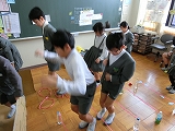 各クラスで2チームつくり、跳んだ回数の合計で競います。