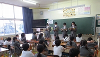 12月19日の朝学習の時間に、6年生が1~5年生の各クラスに行って読み聞かせを