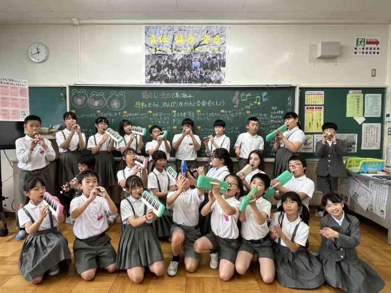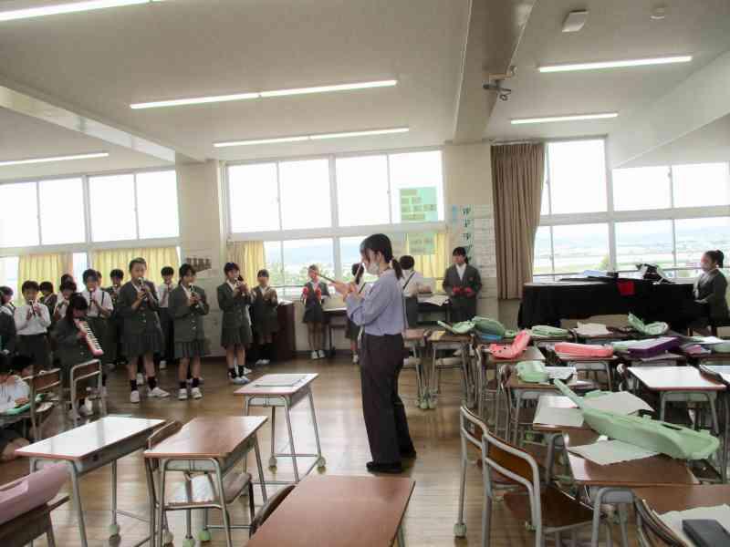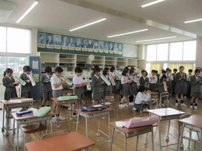 大根布小学校は、合奏「Paradise Has No Border」、合唱「ふるさと」の2曲を披露しました。