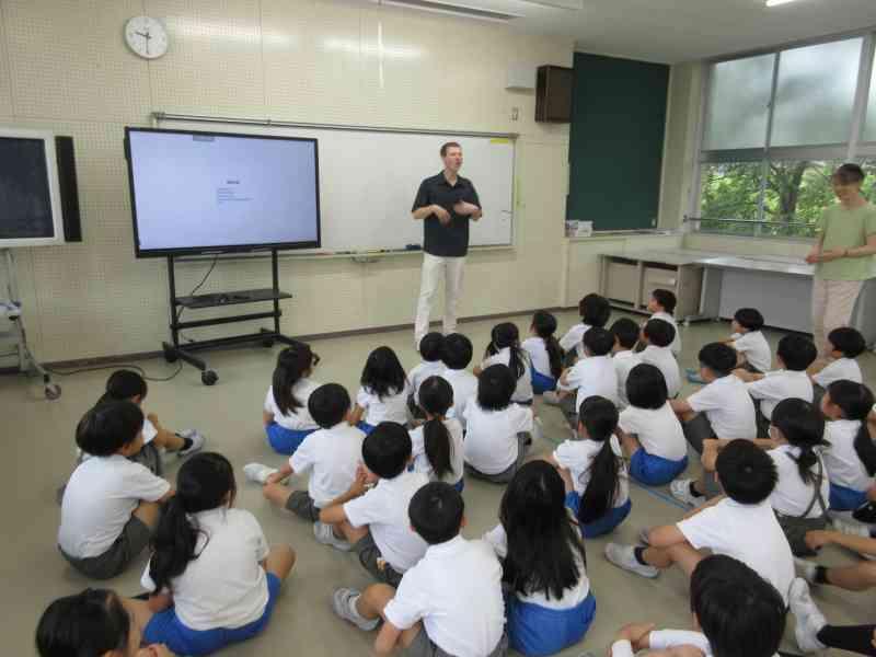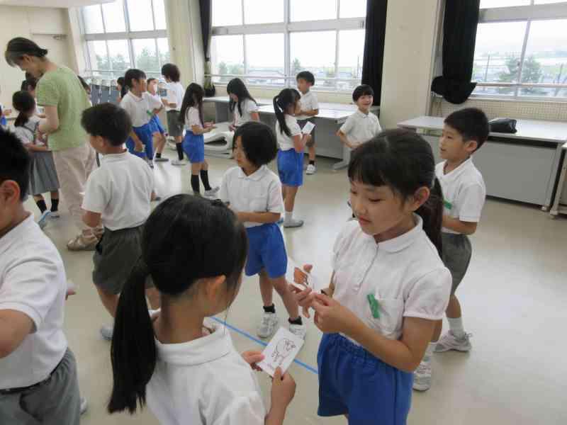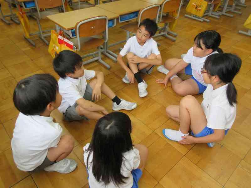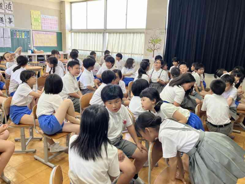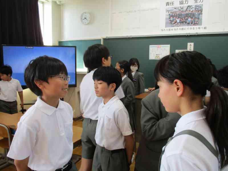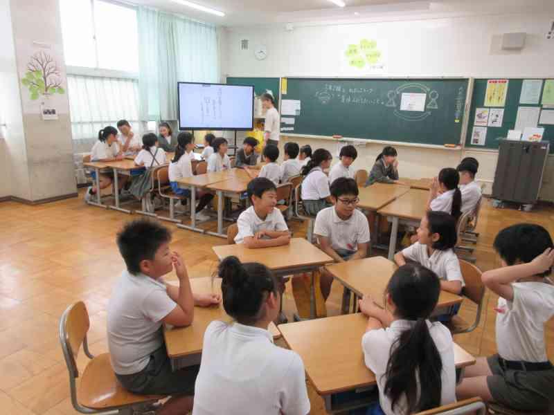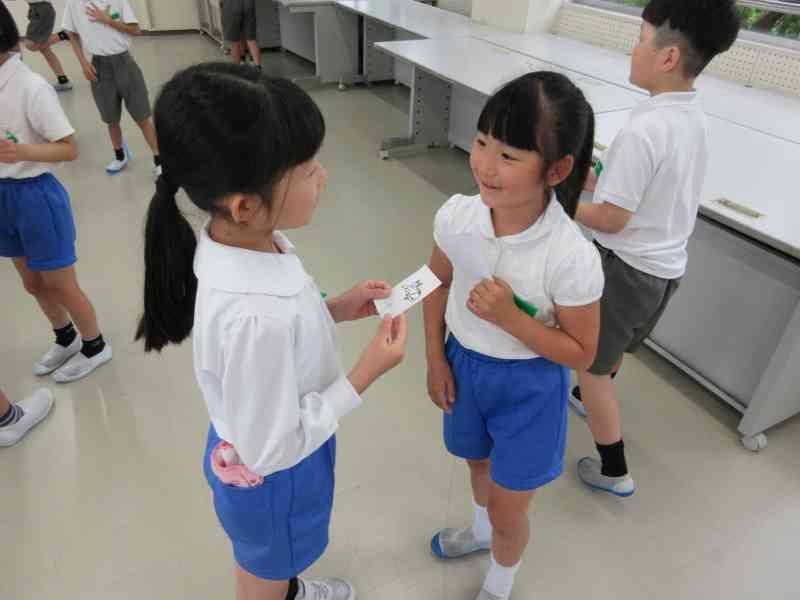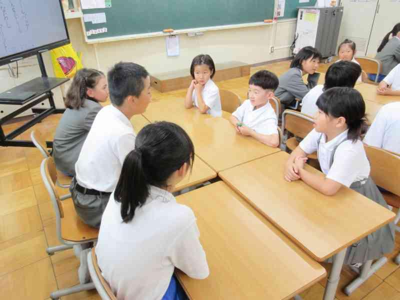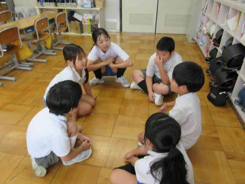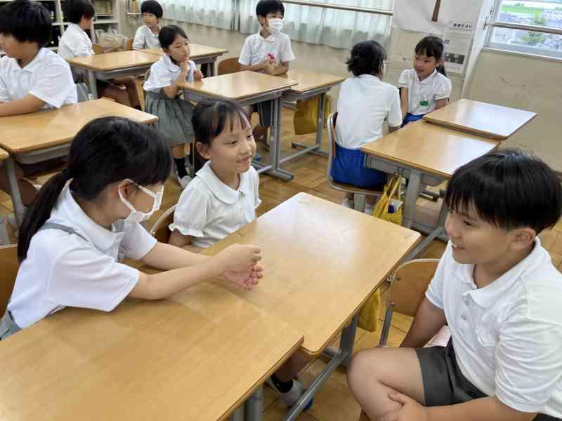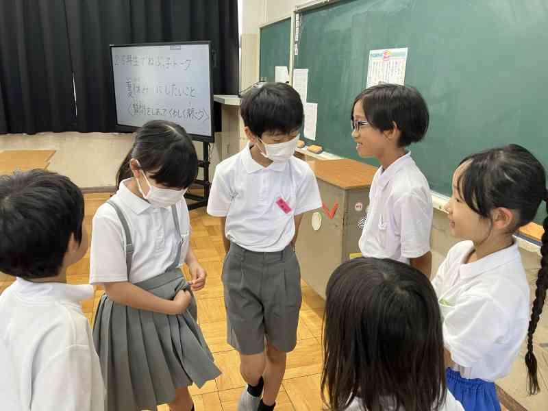 テーマは「夏休みにしたいこと」です。今回は2年生と5年生で交流しました。5年生は積極的に2年生が話しやすいように質問してくれていました。2年生もたくさん質問に答え、5年生の真似をして質問にもチャレンジすることができました。