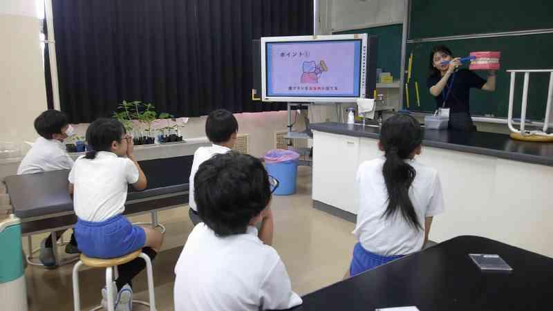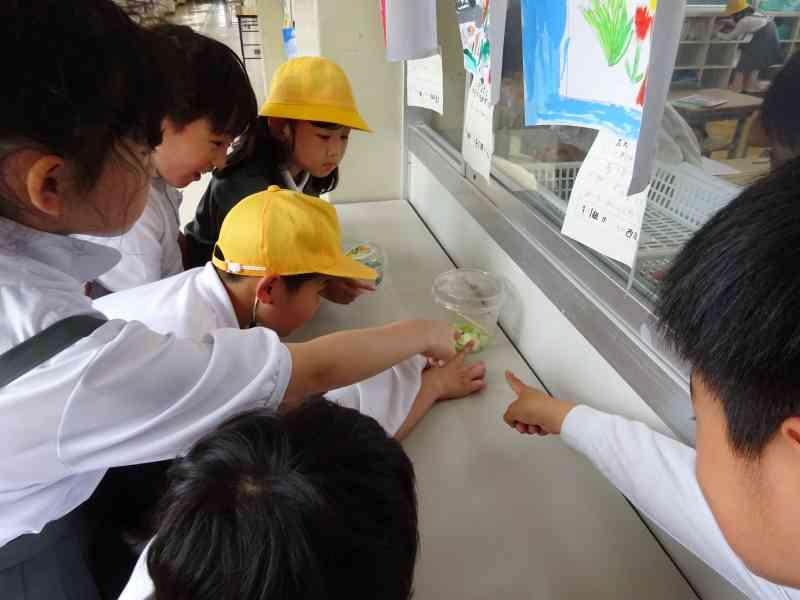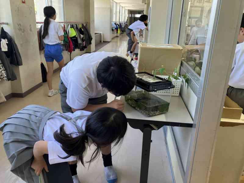 休み時間のたびに水槽をのぞき込んでいる子もいて、とても興味をもっているようです。