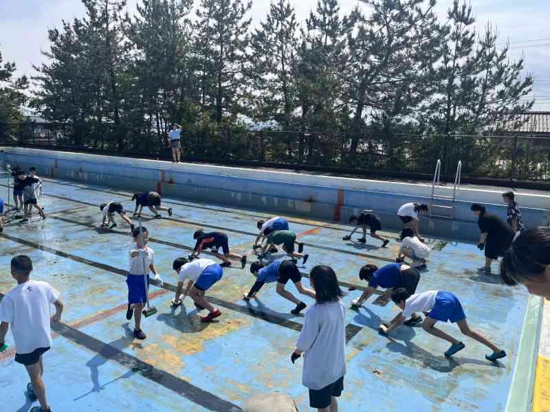 6月2日(月)の1・2限目に、5・6年生が協力してプール掃除を行いました。