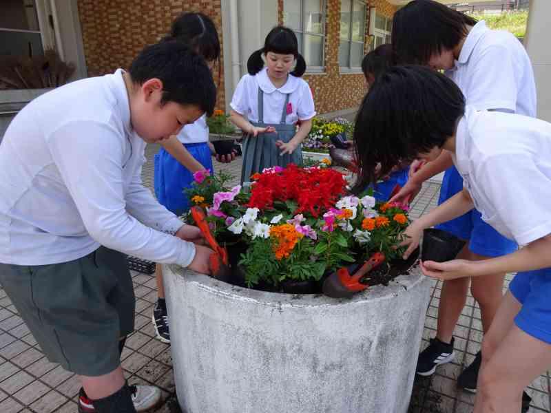 園芸美化委員会のみんなで、人権についてのお話を聞かせていただいた後、花の苗を植えました。