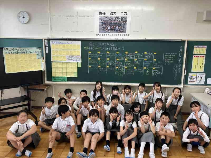 トラブルが起こりがちな6月に、5年生48人全員が「笑顔」で「安心」して「自分らしく」過ごすために、どのようなことに気をつけたらいいかをみんなで考えました。