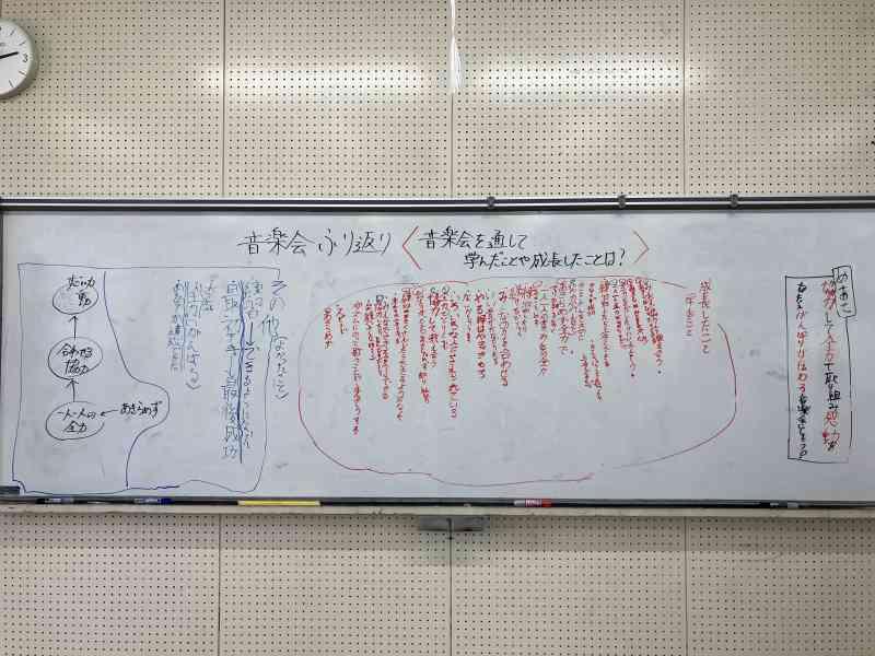 実行委員の子たちが進行、記録をし、学んだことや、成長したこと、今後に生かしたいことなどを話し合いました。