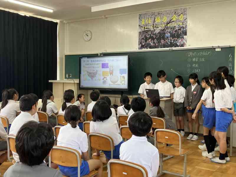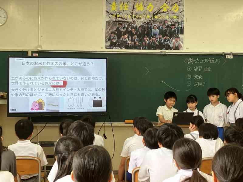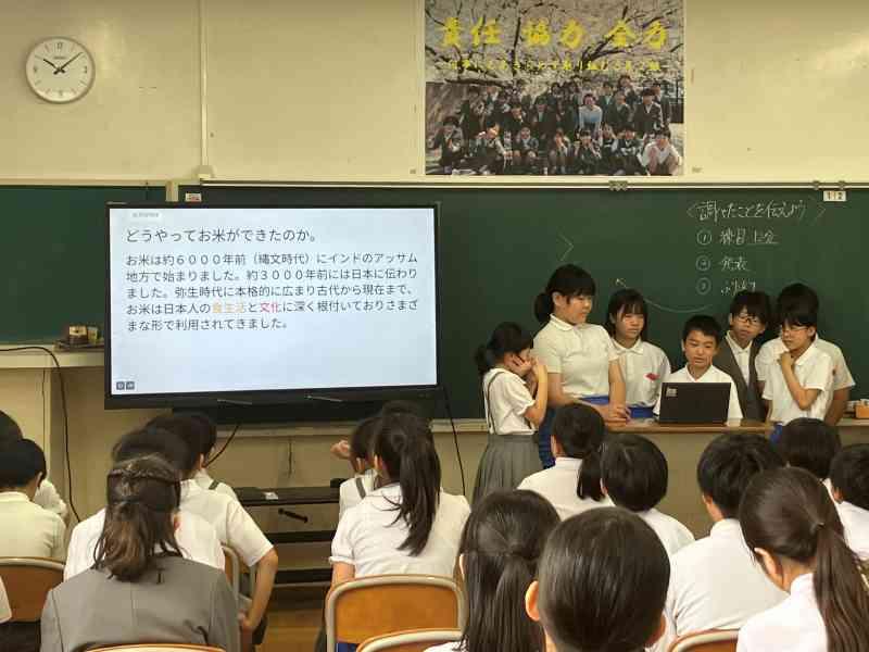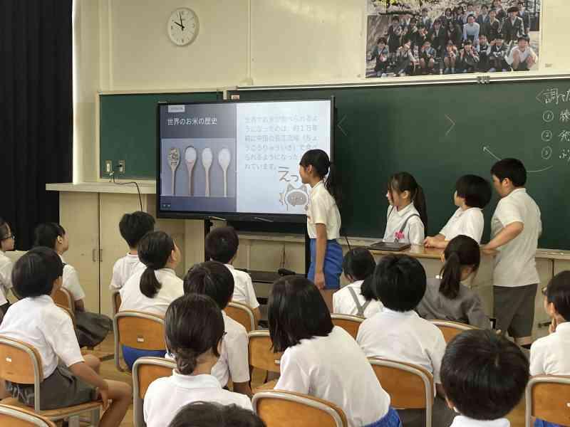 お米について調べたことをスライドを使って発表しました。