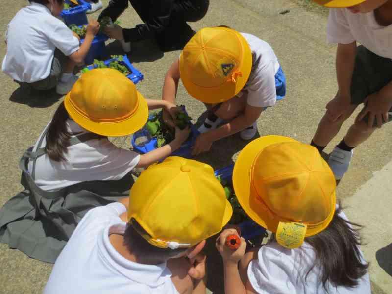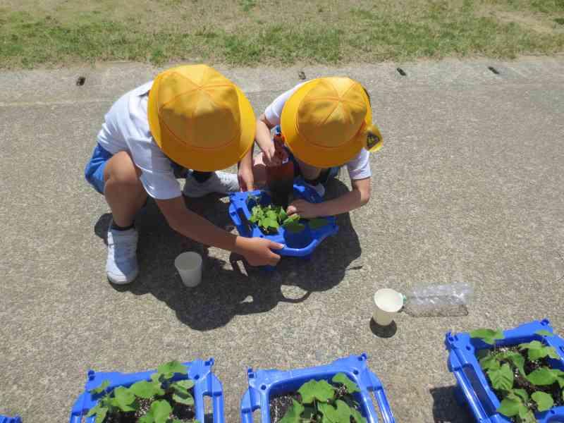 生活の時間には、一生懸命に育てているアサガオが大きくなってきて、お部屋が狭そう・・・ということで、「間引き」をしました。スコップの使い方に苦戦しながらも頑張っていました!
