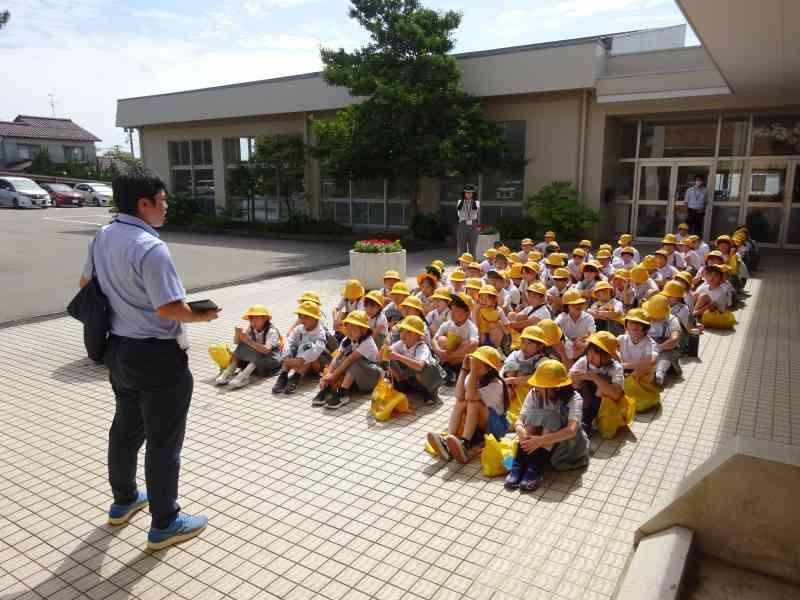 プールでの物の置き方を確認したり、緊急時の避難の仕方やバディの確認をしたり等、小学校での安全なプールの入り方について、真剣に話を聞きました。