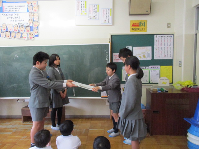 新学期が始まってから、あいさつ運動や1年生のお世話をしたりと、最高学年らしい姿をみせてくれている6年生です。