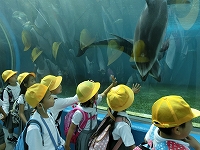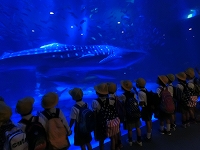 大きなジンベエザメやたくさんの海の生き物や魚を見て、「すごい!」「大きい!」と喜んでいました。その後には、アシカ・イルカも見ました。子どもたちは笑顔でアシカやイルカの様子を見ていてとても楽しい校外学習となりました。