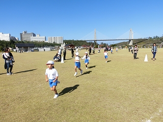 10月7日(水)に第3回内灘町サッカー交歓会が行われました。運動会が終わってから、子ども達は放課後遅くまで、各チームに分かれ練習を積み重ねてきました。初めのころはボールがきても上手に蹴り返すこともできなかったのですが、日が経つにつれ自然と声も出るようになり、パスもつながるようになってきました。9月30日には実際に大会が行われる町のサッカー競技場に行き、天然芝のグラウンドで練習をしてきました。