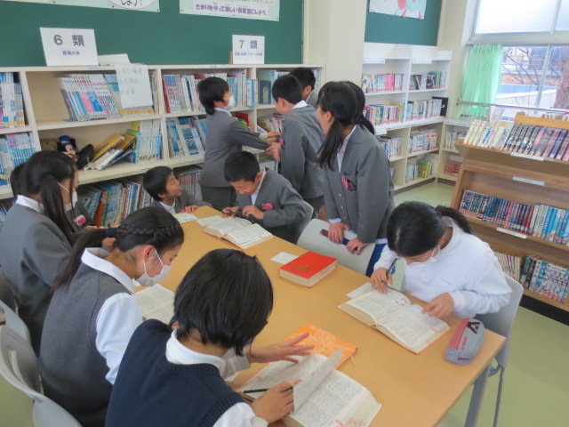 インフルエンザの流行により、延期になっていた図書館祭りが、1月27日(火)の昼休みに行われました。たくさんの人に図書室に足を運んでもらおうと、図書委員会が一生懸命準備を進めてきました。当日は、長休み、昼休みを合わせると、延べ250人を超える児童が図書室に来室し、様々な企画を楽しみました。