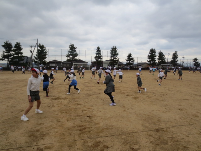 体育委員会のキラキラ活動として、1月16日(金)の昼休みに、「こおり鬼」をしました。2学期に計画をしていたのですが、天候のが悪く、順延を繰り返し、16日にようやく実施することができました。1~6年生まで300人近い児童が参加し、鬼となった体育委員や先生方から逃げ回っていました。運動不足になりがちなこの時期に、みんなで体を動かせる貴重な時間となりました。体育委員会のみなさん、楽しい時間を本当にありがとうございました。