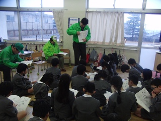 1月27日の4限目から給食にかけて、2年生が安全ボランティアの方と交流会をしました。
