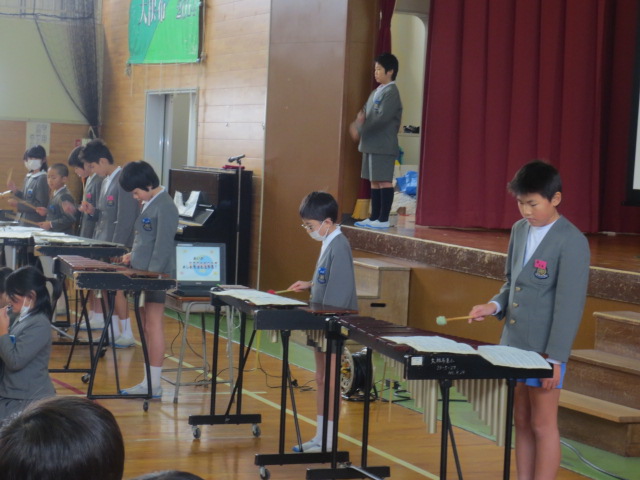最後に今月の歌「世界が一つになるまで」を歌いました。全校の歌声も本当に大きくなってきました。音楽委員会の演奏もとても上手でしたね!