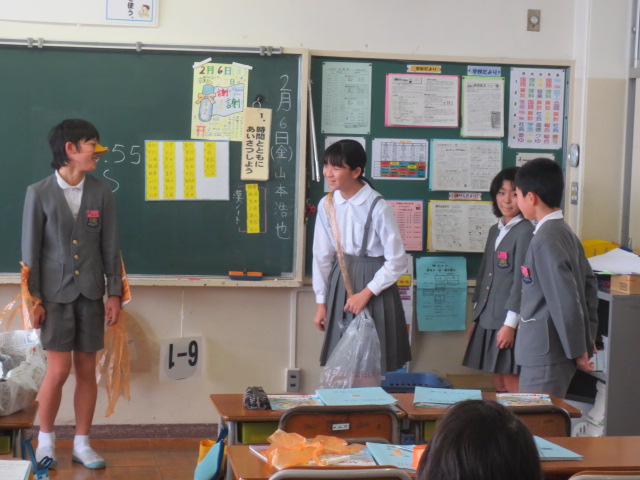 2月6日(金)の外国語活動の時間に、6年生は英語でオリジナル劇を