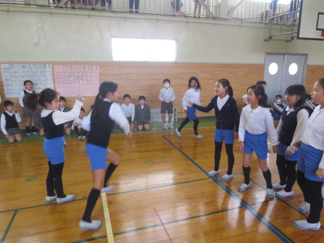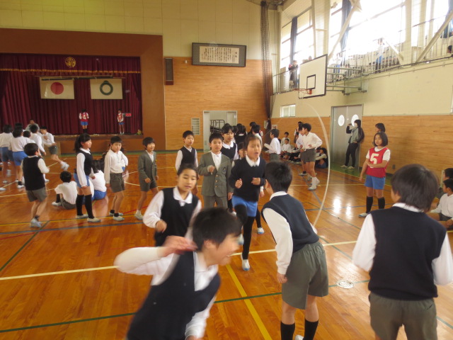 キラキラ活動のジャンケン列車。全校がより仲良くなるように企画をしました。最後まで勝ち残ったのは6年生でした!とても楽しい時間になりましたね!