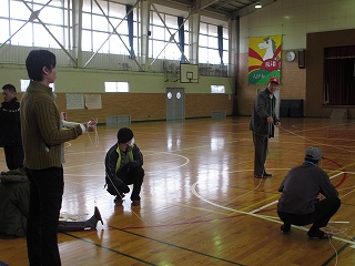 全校が下校した後、いよいよワックスがけです。先生の説明をしっかり聞いて、各場所に