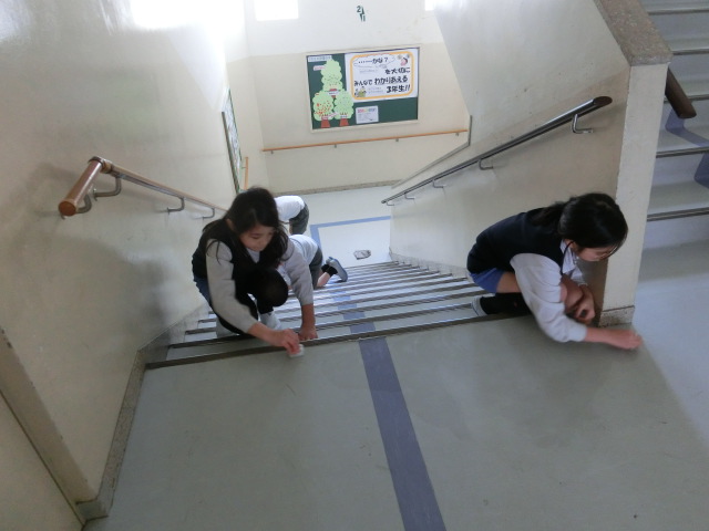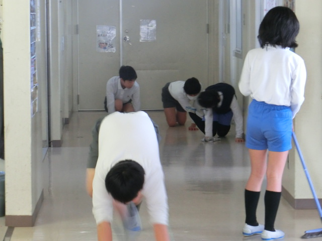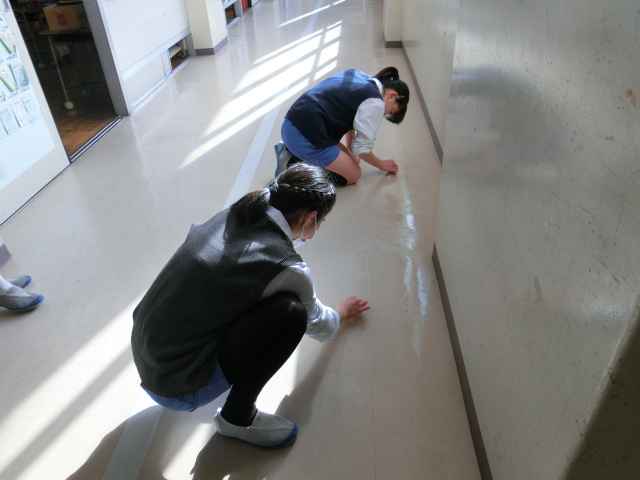 分かれて、ワックスがけを行いました。美化委員会・健康委員会のみなさん、遅くまで