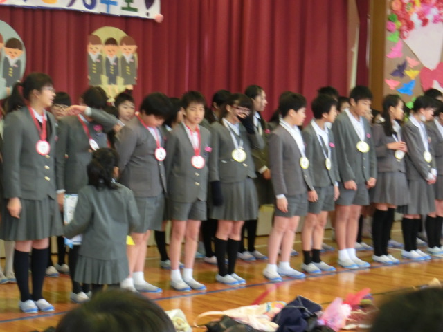 全校で元気よく校歌を歌った後、読書感想文の表彰をしました。