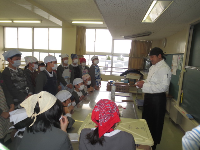 3月5日(木)の2~4限に内灘町の旭ヶ丘にお店を構える「灘乃華本舗あさい」さんに学校に